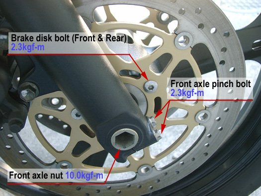 各アイテムのボルト、ナットの締め付けトルク値を参照し1000kmもしくは1ヶ月、6000kmもしくは6ヶ月ごとに増し締めしてください。