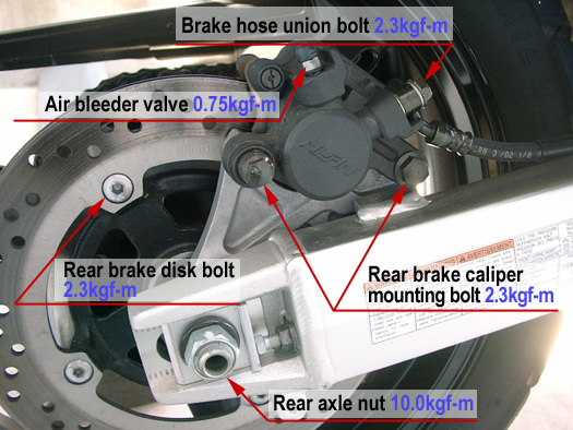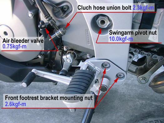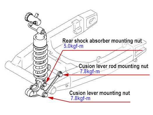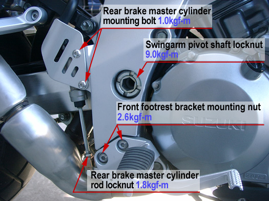 各アイテムのボルト、ナットの締め付けトルク値を参照し1000kmもしくは1ヶ月、6000kmもしくは6ヶ月ごとに増し締めしてください。