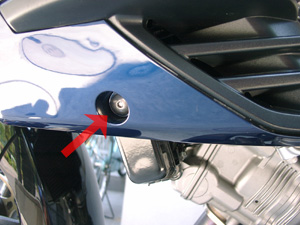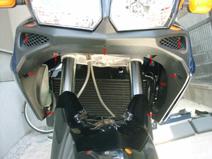 ラジエターに共締めとなっているサイトカウル左右のスクリューを外します。