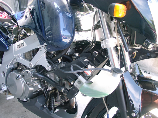 結局サイドカウルも外しラジエターもマウントから外しましてこんな状態になってしまいました。
