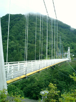 462号とぶつかりT字路を左折途中、森林科学館の前を過ぎて不二洞とスカイブリッジを見学するために左折、看板は大きく出ていたのですが本当にこちらでいいのかと思うほど道が狭く途中不安になりながら走っていくと駐車場に到着。 群馬県上野村にある山間を跨ぐように架けられた橋。別名「スカイブリッジ」。近づくと突然壮大なスケールの橋が姿を現します。 全長225m、高さはなんと90mもあり、橋の下を見ると目がくらみそうです。