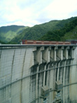 川俣ダムでちょっと休憩してダムの底を眺めてみたらダムの壁沿いに途中に事務所の窓らしきのもが、上のゲートから放水したときにはどうなるんだろう。  |