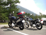 華厳の滝に来たのは、小学校の修学旅行以来です。エレベーターに乗り岩盤の中を約100m降下して滝の展望台へ。 水量も多く圧巻です。ここのお土産屋でキーキーなんか鳴いているので、何かと見てみるとおサルのぬいぐるみでした。面白そうだったので自分もやってみました。同じぬいぐるみがあちこちに置いてありそこらじゅうで鳴いていました。華厳の滝を後にして、竜頭の滝めざし湖畔の道路を快適に走ります。中途半端な季節の為かどこも空いておりました。 |